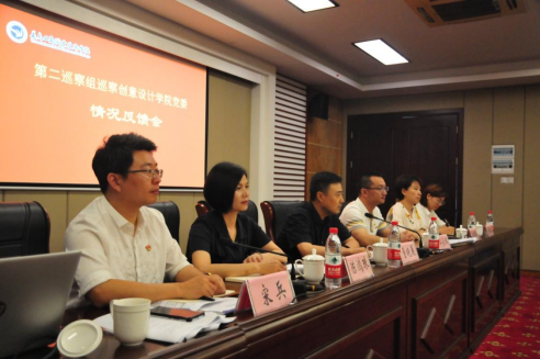会议在校望道楼智慧厅召开,第二巡察组全体人员,组织部、宣传部、纪委办、巡察办负责人,创意设计学院、创意园全体教职员工参加。